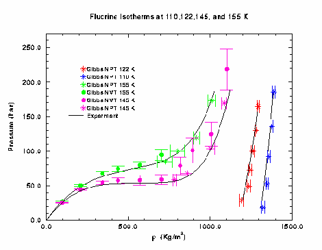 The Gibbs simulation (NVT and NPT) was used to map out the isotherms at